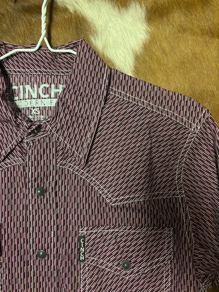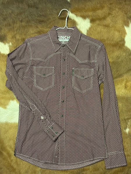 Mens cinch Maroon patterned Pearl snap shirt modern fit