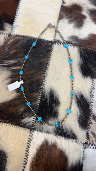 Turquoise chips and Sterling Silver Pearl Necklace 18”