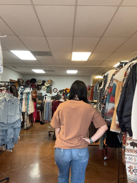 Super soft cotton, polyester blend ribbed v-neck with front pocket!