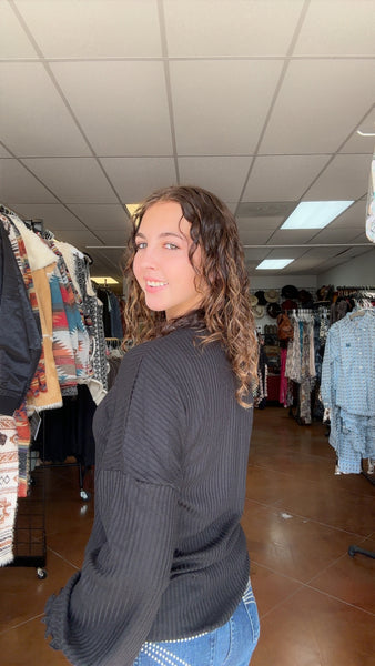 Lovesoft Black Long Sleeve Ribbed Ribbon Sleeve sweater